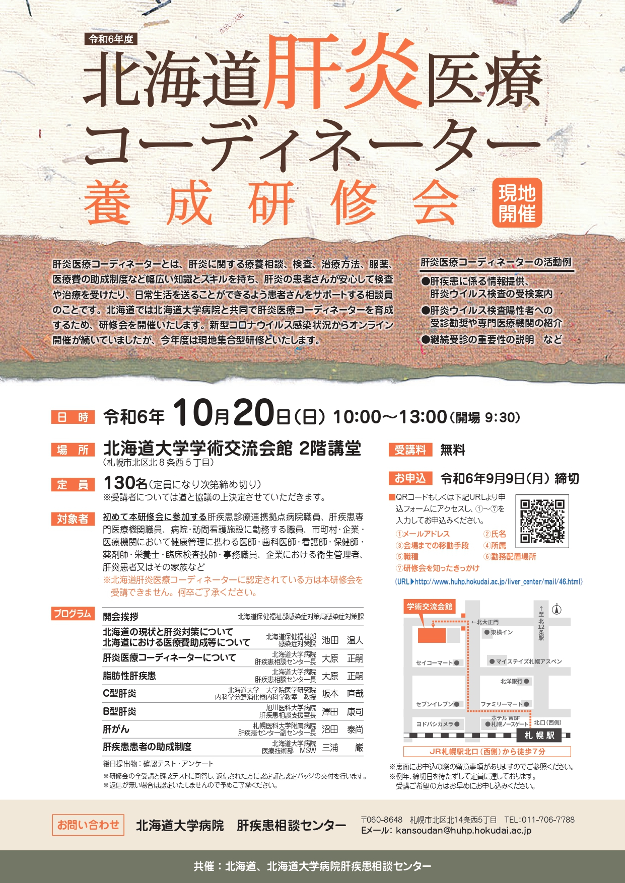トップページ > ユーザー別で探す > 拠点病院関係者の方へ > 支援について > 関係者支援 > 地域肝炎医療治療コーディネーター養成 > 北海道大学病院(取り組み事例:肝炎医療コーディネーター養成研修会)